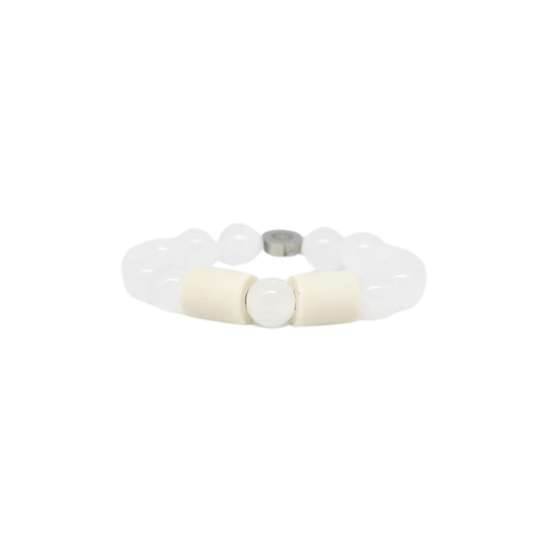 Siliconband, Bergkristall pärlor samt signaturpärla i metall. Fritt från nickel, bly och kadmium.