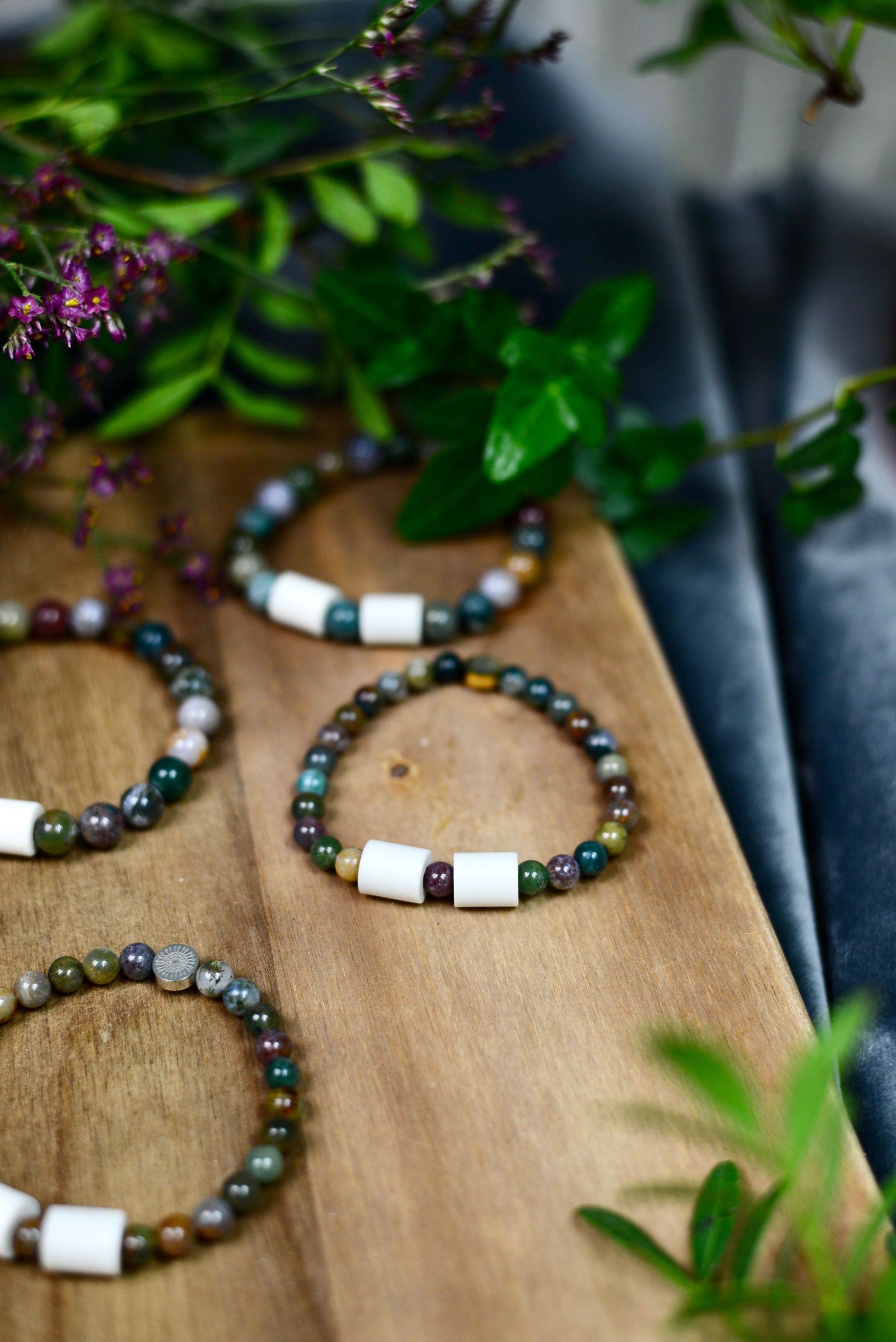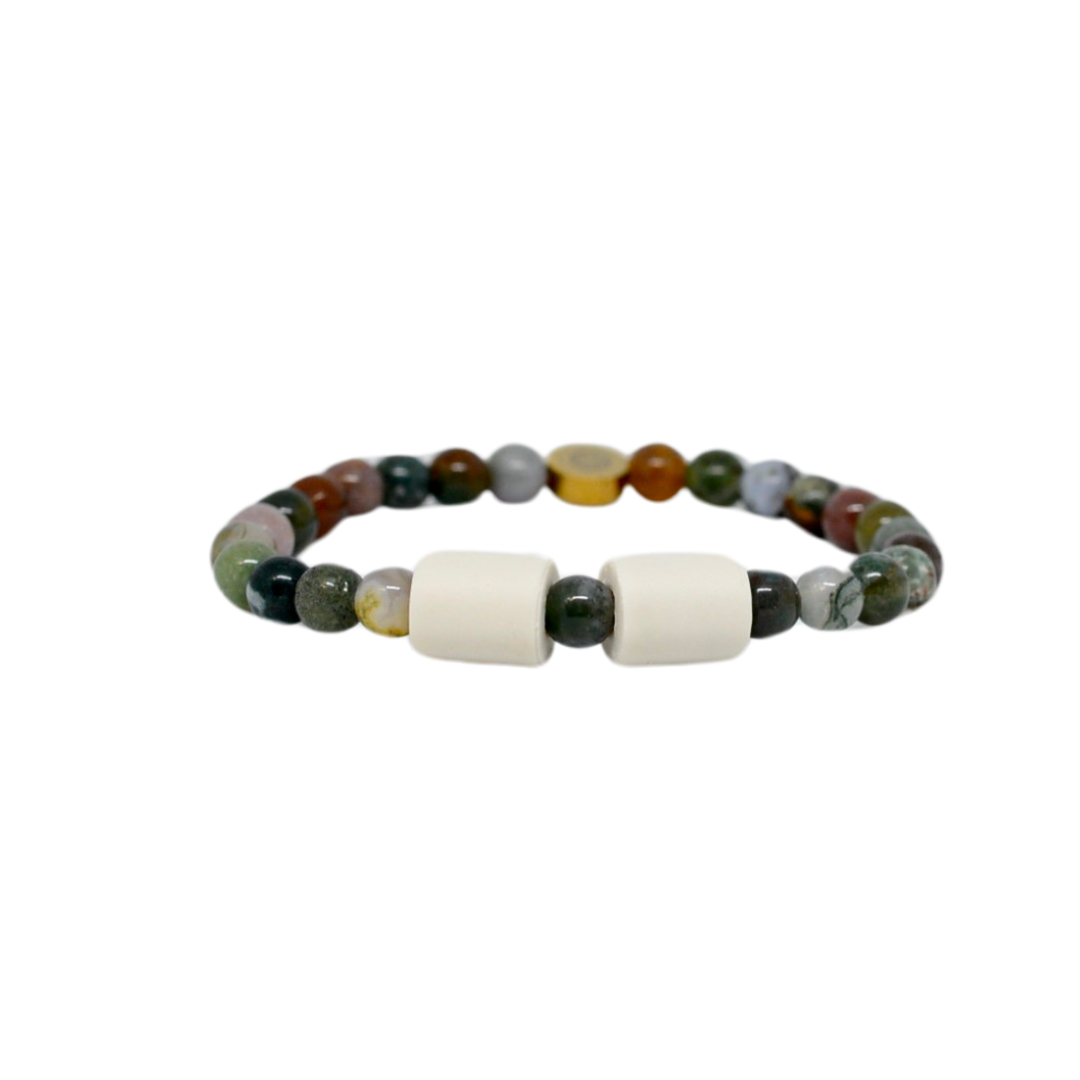 Hitta lugn, styrka och balans med vĂ„rt armband av Indisk Agat 6mm & NaturpĂ€rlor â designat för att bĂ€ras varje dag, av bĂ„de kvinnor och mĂ€n.