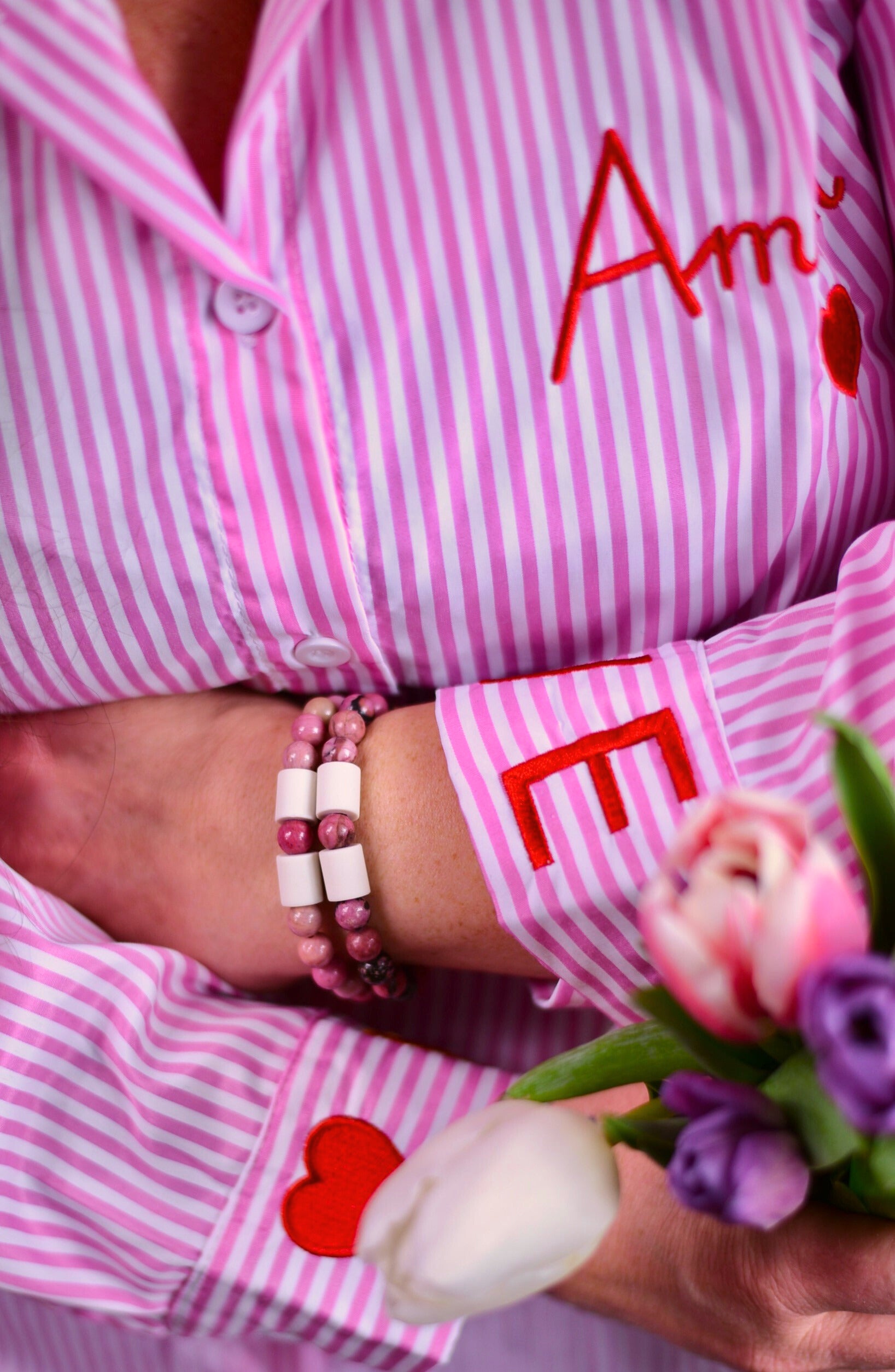 Den rosa mixen av mörkrosa, ljusrosa och crèmefärgade rhodonite symboliserar kärlek, balans och emotionell läkning. Stenen sägs kunna: