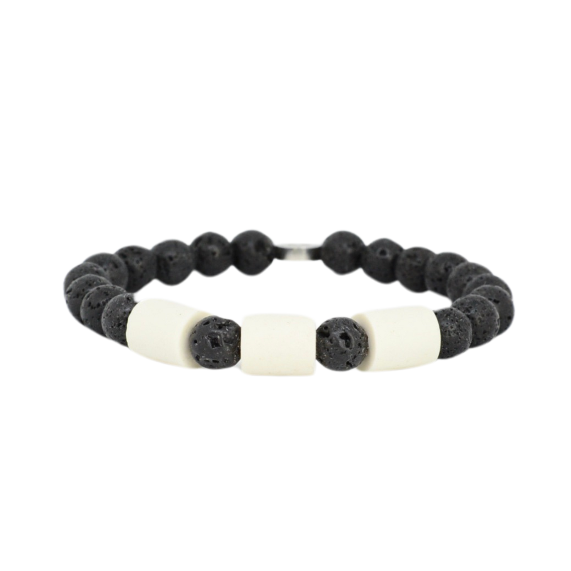Material: Naturpärlor av Kibushi-lera jäst med EM, siliconband, Pärlor av lavasten 8mm samt signaturpärla i metall. Fritt från nickel, bly och kadmium. Pärlorna sitter på ett starkt siliconband, som gör att armbanden är lätta att ta på och av.